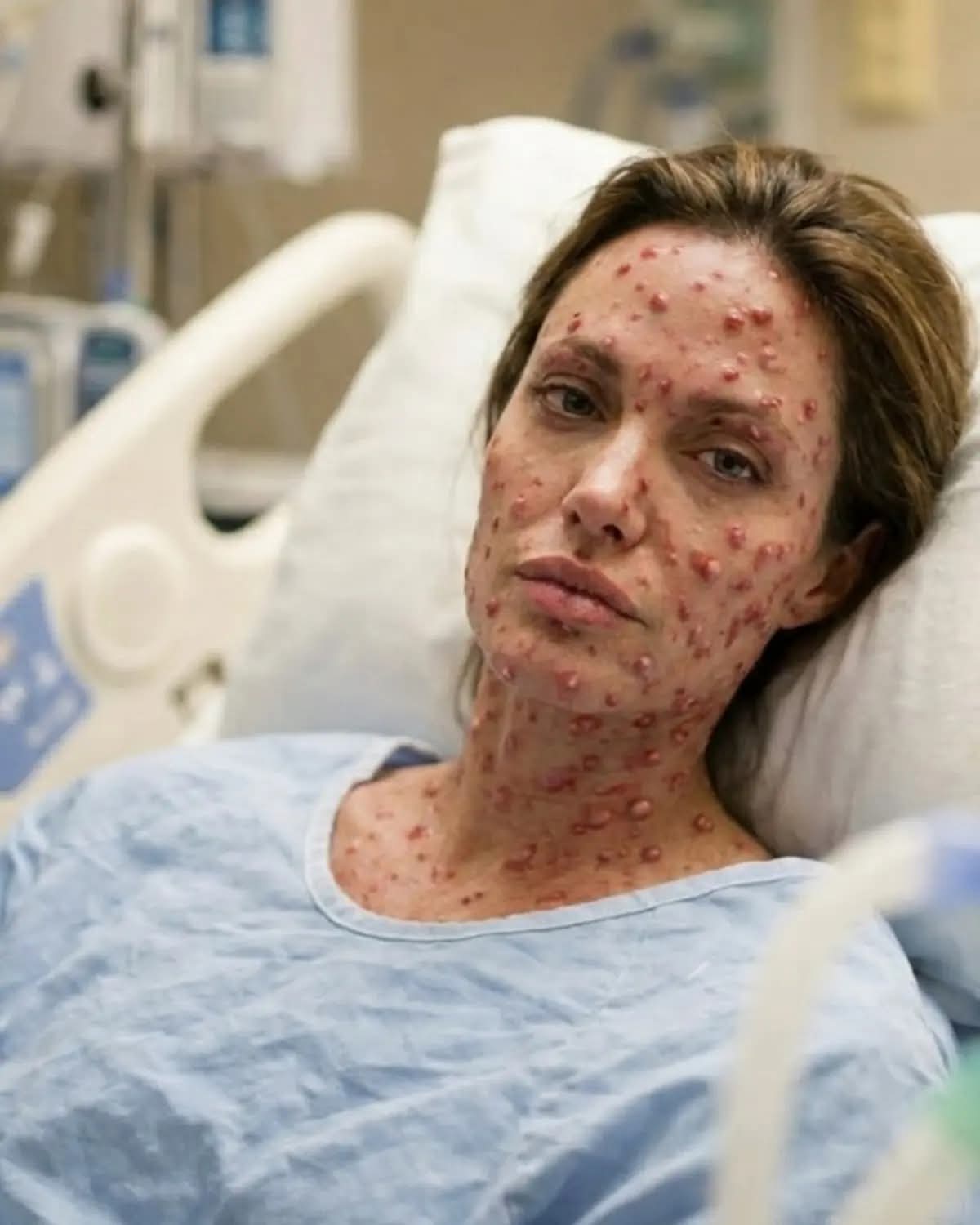Fans around the world were left stunned this week following reports that Angelina Jolie was hospitalized after developing a severe and unusual medical condition described as causing raised bumps across much of her body. While official details remain limited, sources indicate that the symptoms appeared suddenly and intensified quickly, prompting doctors to conduct urgent and comprehensive evaluations.