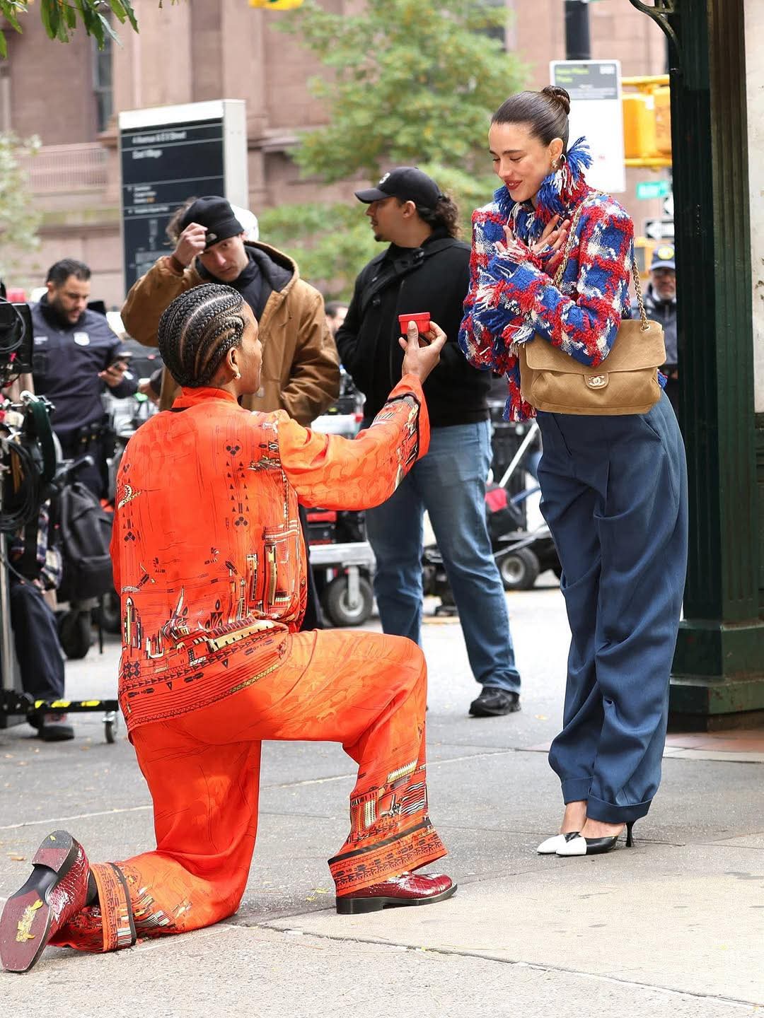 New Yorkers spotted a rom-com scene in the East Village on Tuesday afternoon, when A$AP Rocky proposed to Margaret Qualley in front of the Astor Place subway station. The duo was filming a secret project for Chanel, according to the French house.