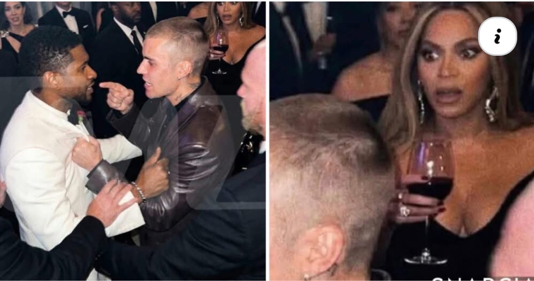 “Beyoncé Goes Viral Over Priceless Reaction to Party Confrontation” between Usher Raymond and Justin Bieber.