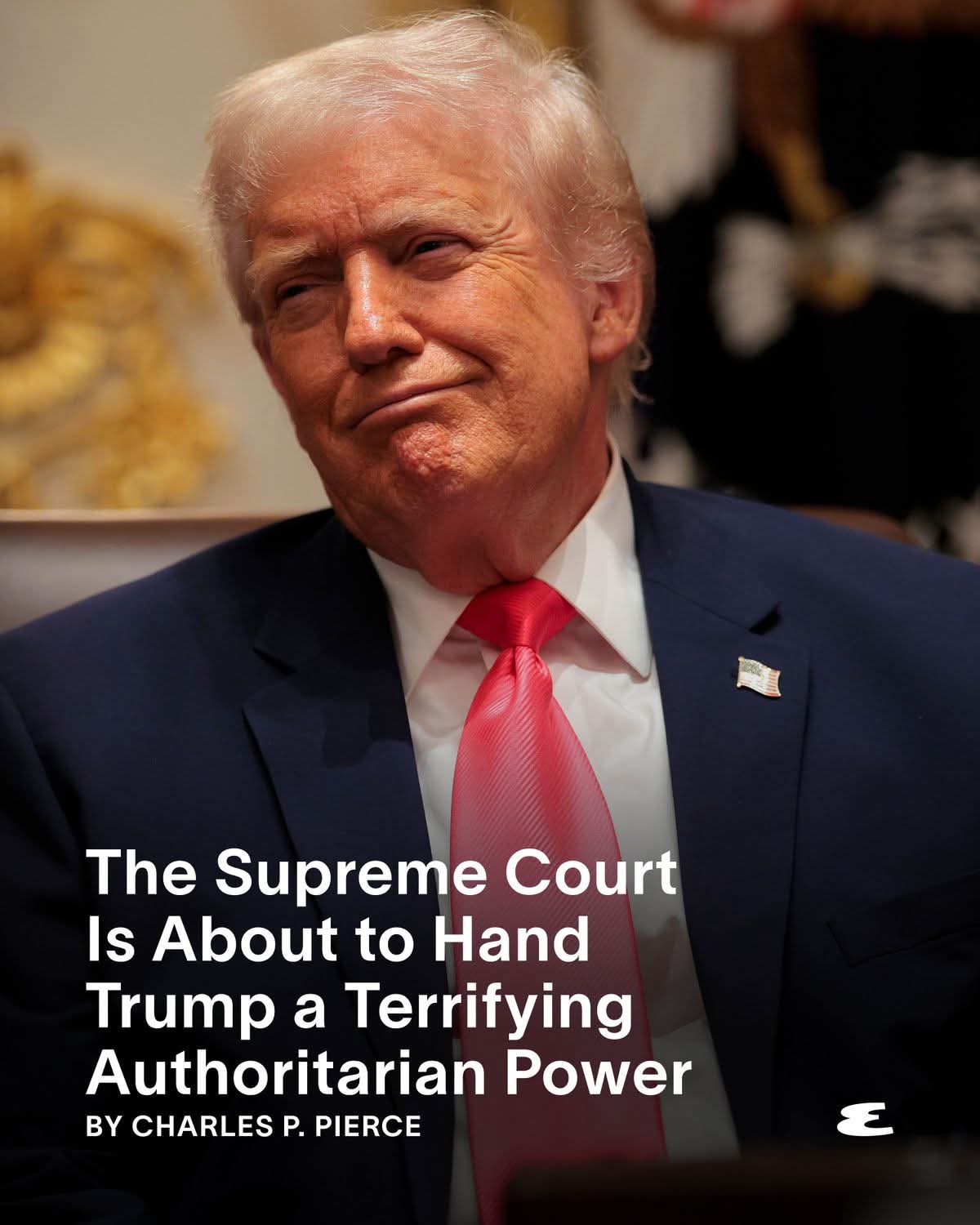 BREAKING:”The Supreme Court Is About to Hand Trump a Terrifying Authoritarian Power Chief Justice John Roberts and the conservative majority are undoing the very fabric of American democracy, and they don’t seem to care”…see more here…