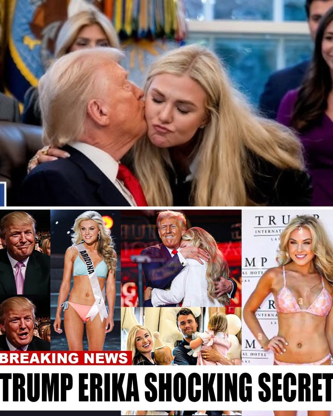 From Pageant Spotlights to Political Thrones: Unraveling Erika Kirk’s Enigmatic Path Amid Triumph and Turmoil A hug with Trump at the memorial ignites fury: resurfaced shots of Erika dribbling in a sparkling gown for his Miss USA throne, her athletic poise now fueling theories of deeper scouting in his “vicious” empire. But rewind to 17-year-old her, launching orphan aid in Romania’s trafficking haze, U.S. troops toting toys while locals cried foul on evangelical “rescuers”—claims fact-checks shred, yet the timing torments. Jesuit halls, Liberty doctorates, a Corcoran real estate stint echoing Epstein’s ghosts, and kids’ faces forever blurred in family lore. Charlie’s assassination catapults her to power, but with 120,000 recruits and Vance whispers, is she heir or architect? Confront the haunting mosaic of faith, flash, and forbidden files—the explosive exposé in the comments will leave you questioning every embrace.