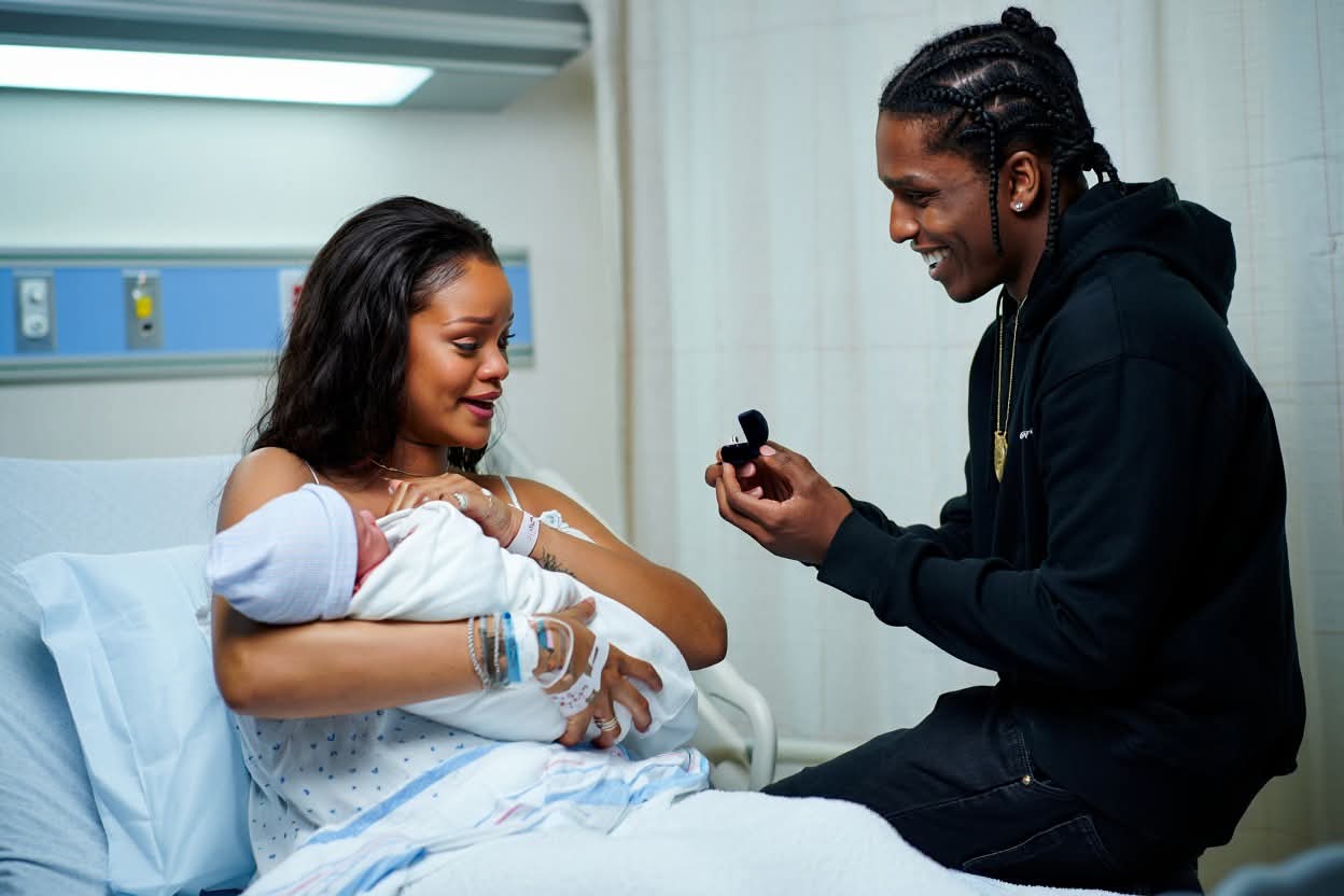 In a scene straight out of a fairy tale blended with raw, real-life emotion, A$AP Rocky proposed to Rihanna just minutes after the birth of their third child, a daughter named Rocki Irish Mayers, on September 13, 2025. The intimate moment, unfolding in the delivery room of a Los Angeles hospital, left medical staff, family members, and eventually the world in awe. Rocky’s heartfelt words during the proposal—”You’ve made me a father three times over; now let me make you my wife forever”—quickly leaked and exploded across social media, amassing millions of views and shares within hours. This unexpected declaration not only cemented their status as one of Hollywood’s most beloved couples but also highlighted the profound depth of their partnership, turning a private family milestone into a global celebration of love.
