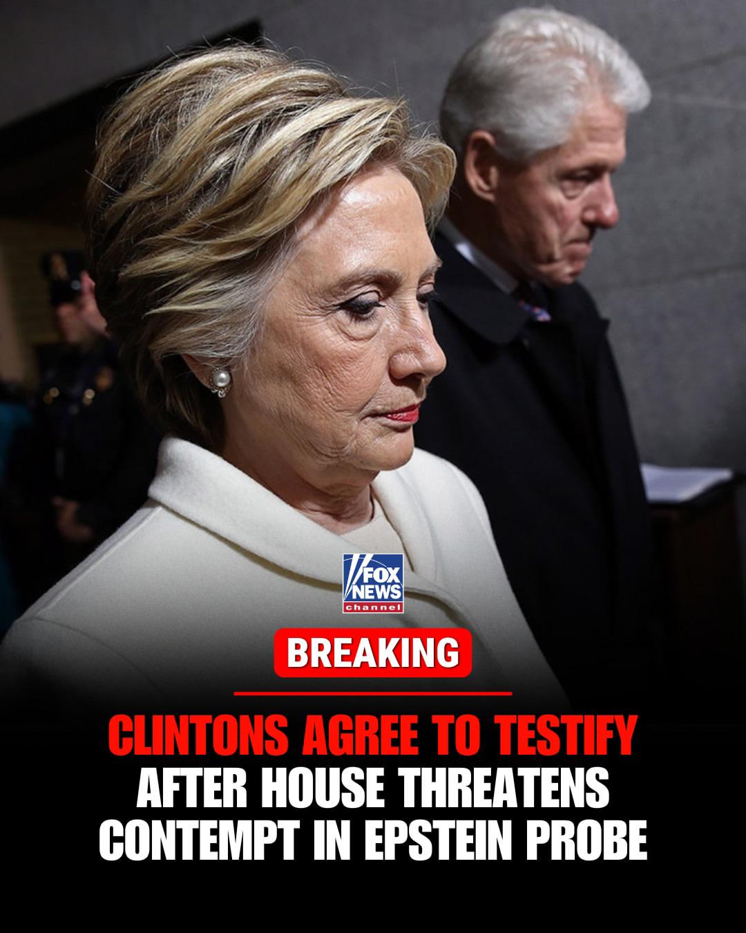 Clintons agree to testify after House threatens contempt in Jeffrey Epstein probe. Former President Bill Clinton and former Secretary of State Hillary Clinton have agreed to testify in the House Oversight Committee’s Jeffrey Epstein investigation after lawmakers moved toward holding them in criminal contempt of Congress.