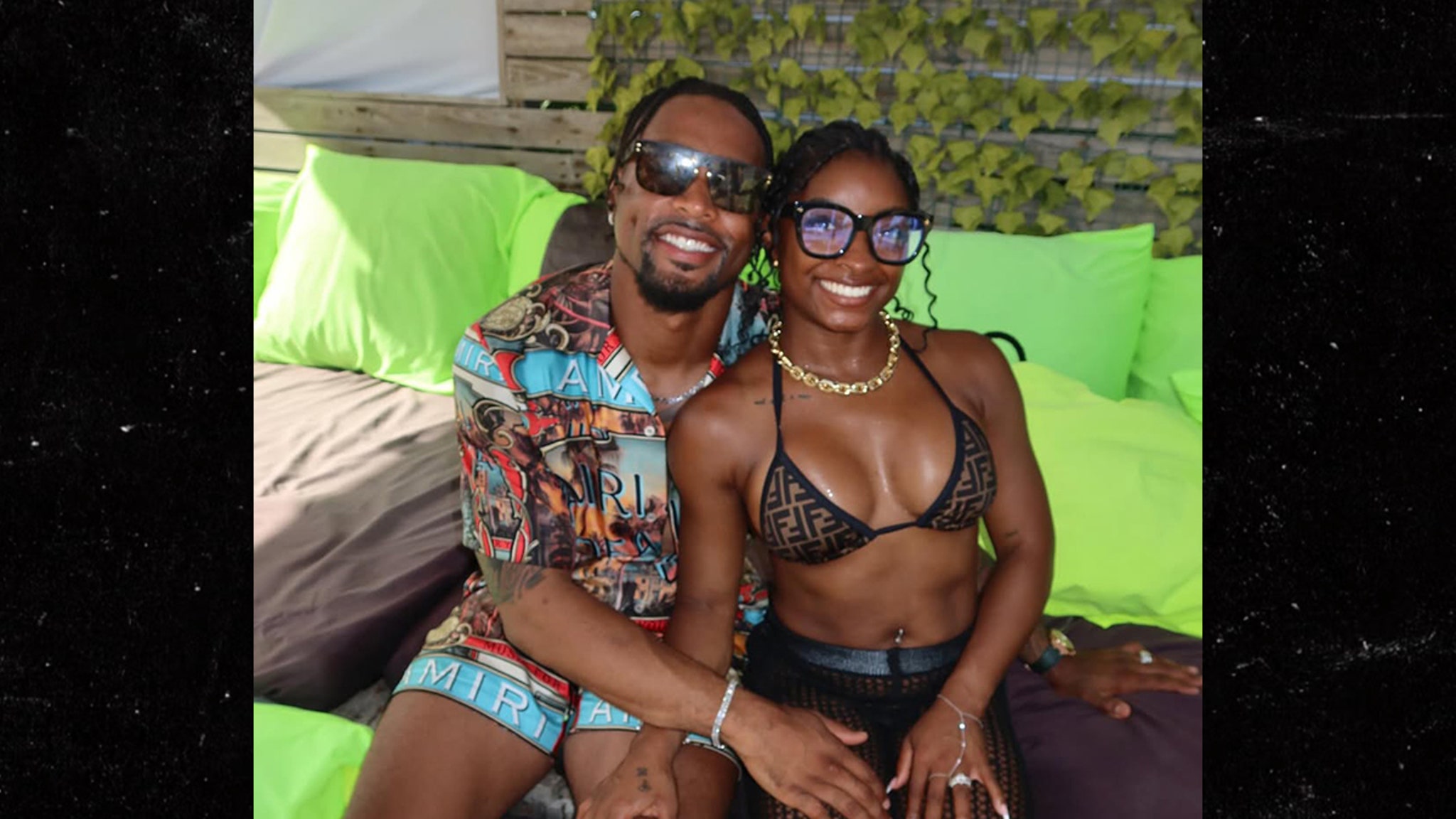 Biles, 28, rocked a Fendi bikini and accessorized with a chunky gold chain necklace. She looked completely unbothered as she cuddled up with Owens and posed with a drink in hand.