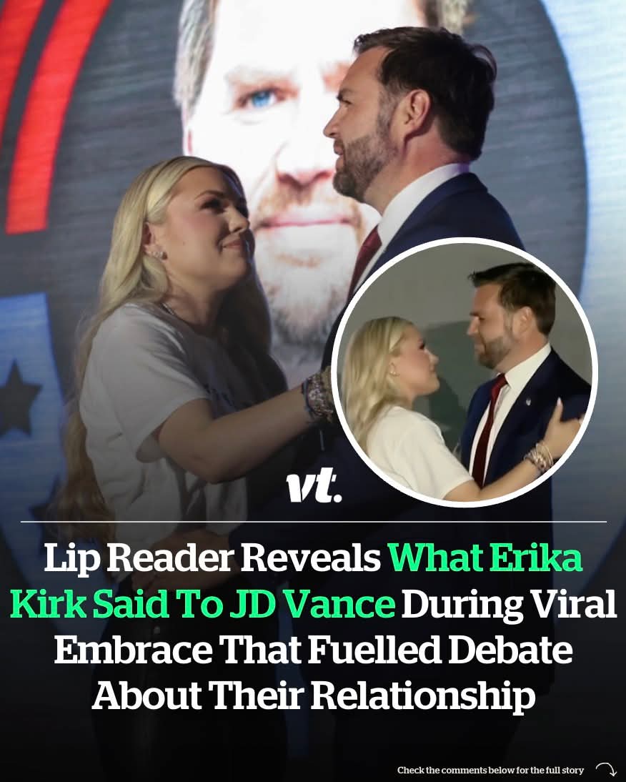 Lip reader reveals what Erika Kirk said to JD Vance during the viral embrace that fuelled debate about their relationship, see what was said here…