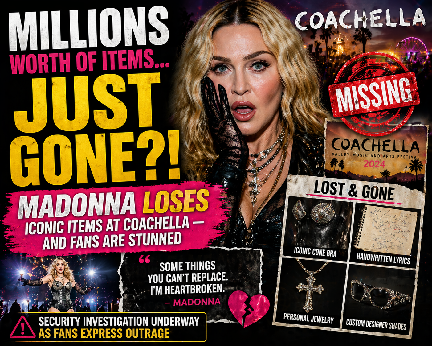 “Millions worth of items… just gone?!”Madonna LOSES iconic items at Coachella — and fans are stunned