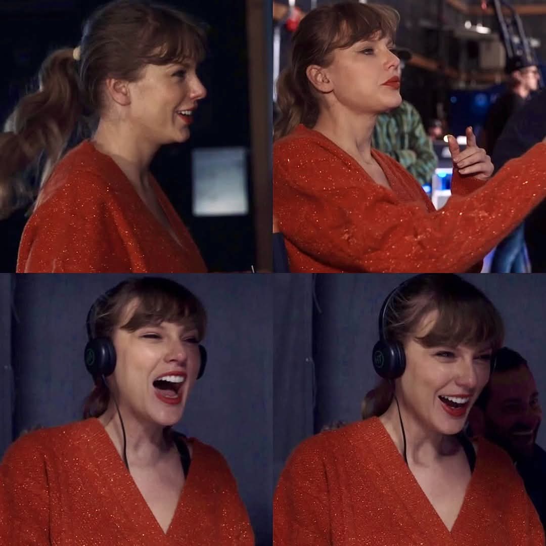 Swift’s other notable promo strategy concerns her signature red lip. In the same “New Heights” episode, the Red singer ditched the color for a sunset orange hue that ties in with the new album’s color scheme after counting down to her The Life of a Showgirl announcement with a glittery orange digital clock.