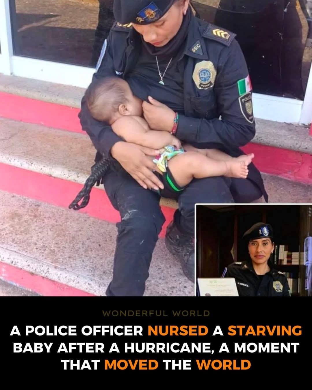 When duty met love, humanity shone through the storm. After Hurricane Otis left Acapulco in ruins, police officer Arizbeth Dionisio Ambrosio searched the wreckage for survivors. Amid the chaos, she found a four-month-old baby hungry, crying, and weak. With nothing else left, the officer did what only compassion could command: she nursed the child herself. No cameras, no orders just an act of pure humanity. The photo of that quiet moment spread across the world, reminding us that true strength isn’t always in power, but in tenderness. For her selfless act, Arizbeth was promoted not just in rank, but in spirit.